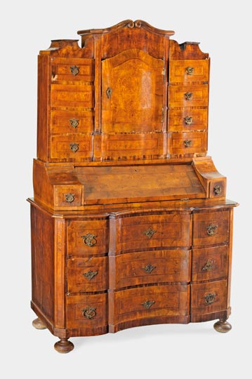 Áttört, domborított, gazdag barokk ornamentika. |
