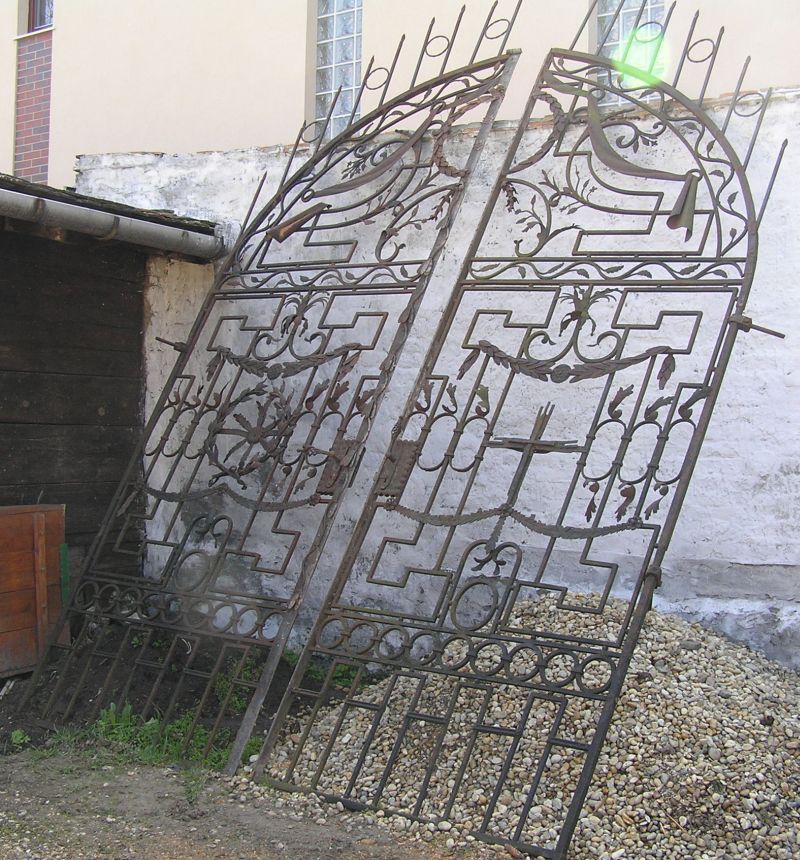 Kovácsolt vas és réz. Domborított barokk körvonalú. A sopronkertesi pálos kolostorból származik. |