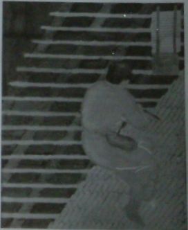 Áttört, két vonal közé szorított arabeszkes díszítés, eredetileg mindkettő tovább folytatódott. Fehér olajfestékkel átmázolva. |